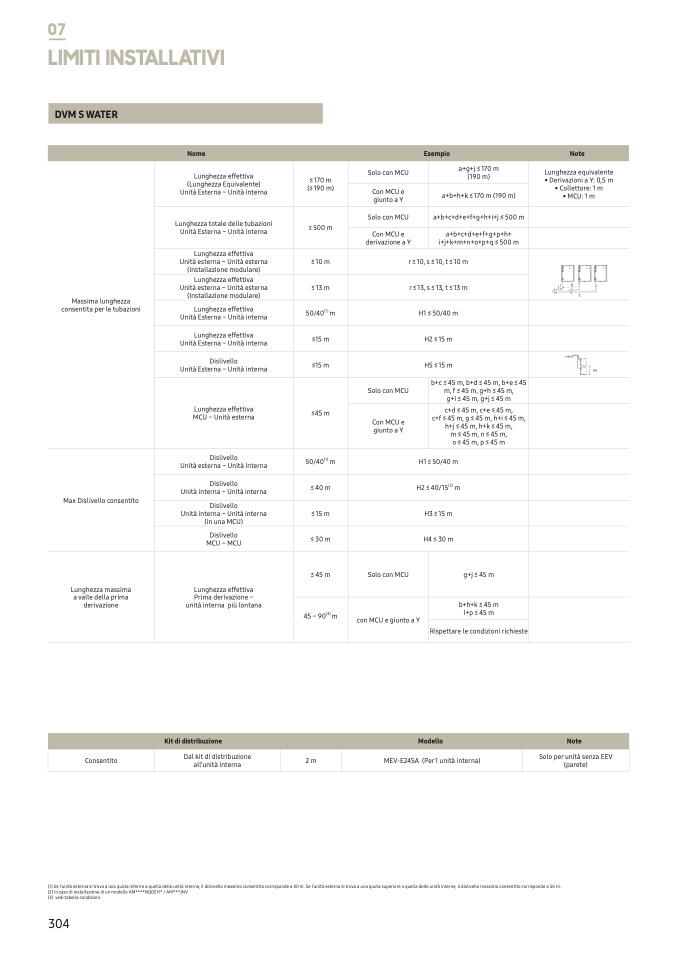(1) Se l’unità esterna si trova a una quota inferire a quella delle unità interne, il dislivello massimo consentito corrisponde a 40 m. Se l’unità esterna si trova a una quota superiore a quella delle unità interne, il dislivello massimo consentito corrisponde a 50 m.
