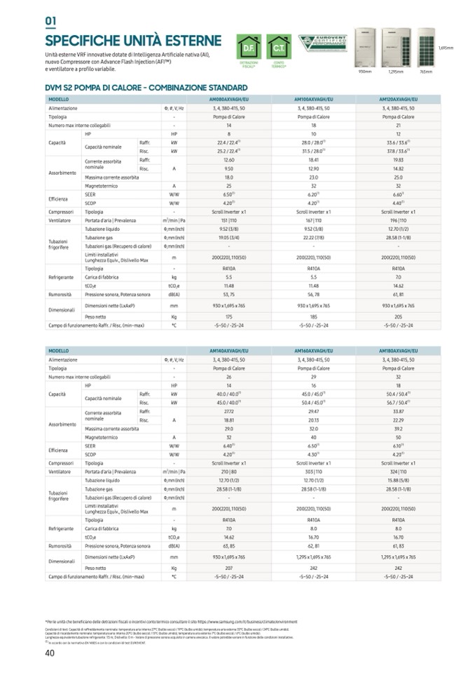 *Per le unità che beneficiano delle detrazioni fiscali o incentivi conto termico consultare il sito https://www.samsung.com/it/business/climate/environment