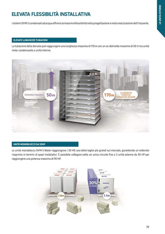 risparmio in termini di spazi installativi. È possibile collegare sotto un unico circuito fino a 3 unità esterne da 30 HP per