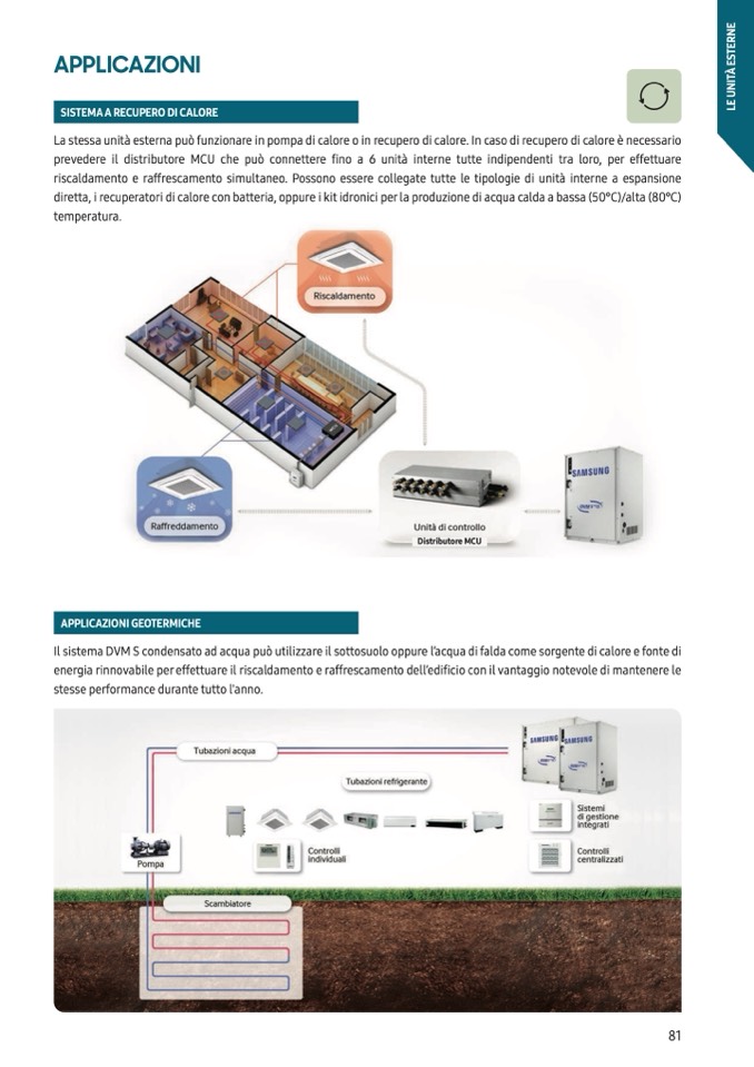 riscaldamento e raffrescamento simultaneo. Possono essere collegate tutte le tipologie di unità interne a espansione