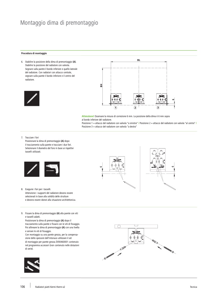 Attenzione! Osservare la misura di correzione 6 mm. La posizione della dima è 6 mm sopra