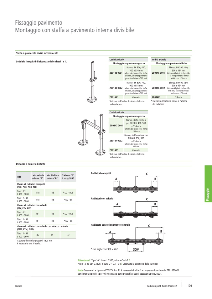 Nota Osservare L e tipo con FTV/PTV tipo 11 è necessaria inoltre 1 x compensazione laterale ZB01450001
