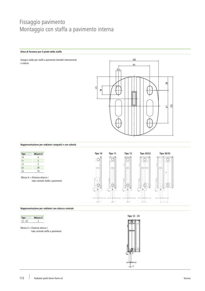 Disegno valido per staffe a pavimento divisibili internamente
