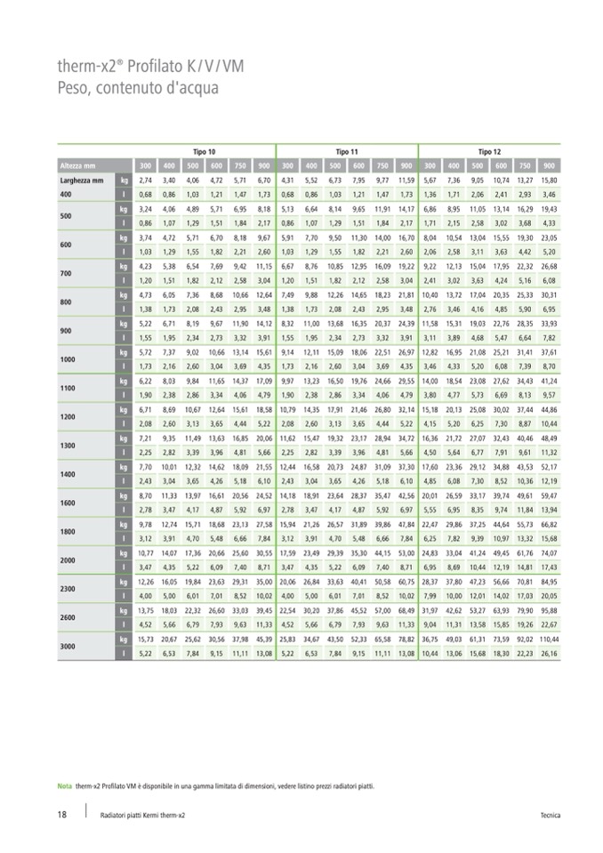 Nota therm-x2 Profilato VM è disponibile in una gamma limitata di dimensioni, vedere listino prezzi radiatori piatti.