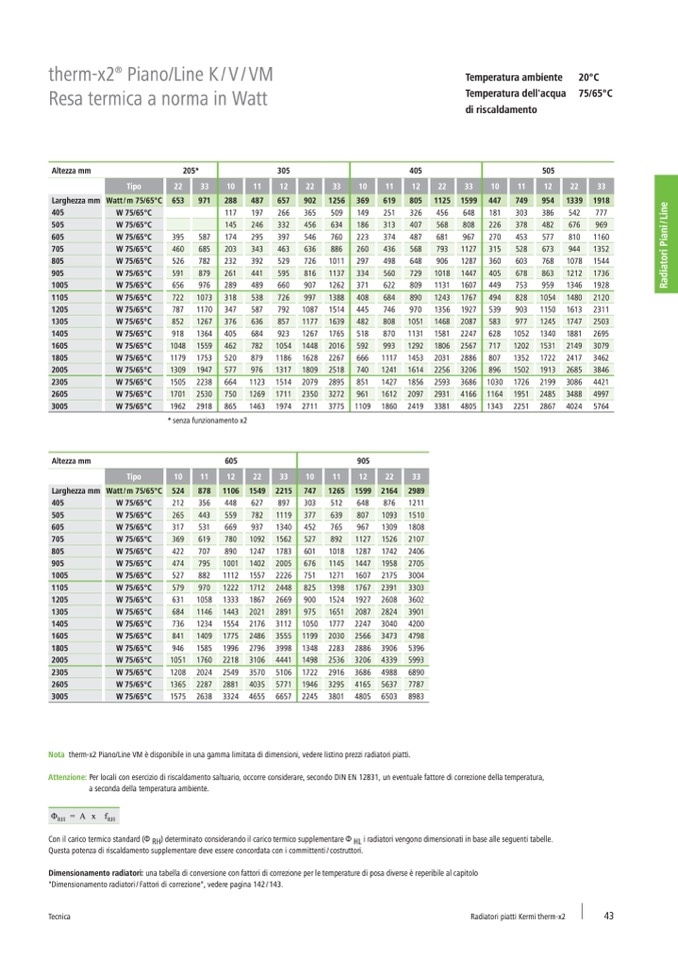 Nota therm-x2 Piano/Line VM è disponibile in una gamma limitata di dimensioni, vedere listino prezzi radiatori piatti.