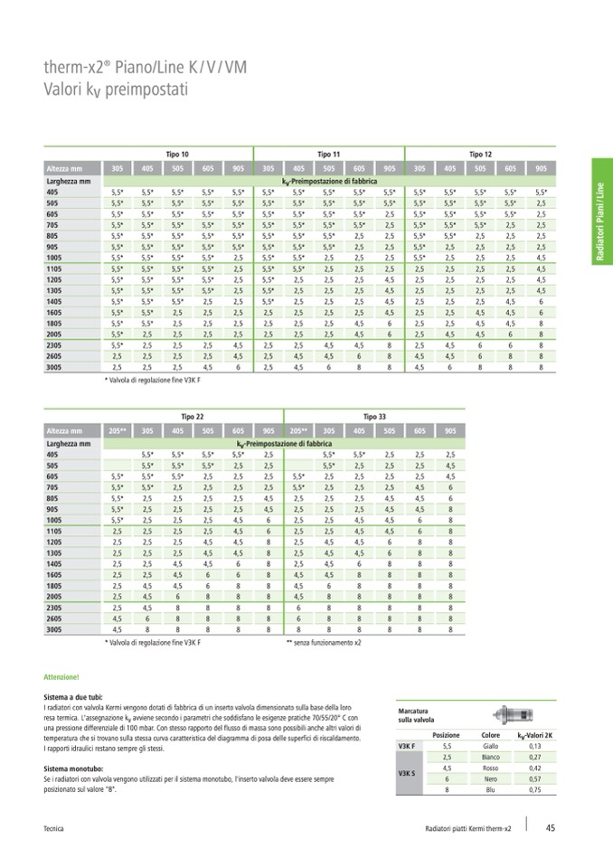 resa termica. L'assegnazione kv avviene secondo i parametri che soddisfano le esigenze pratiche 70/55/20° C con