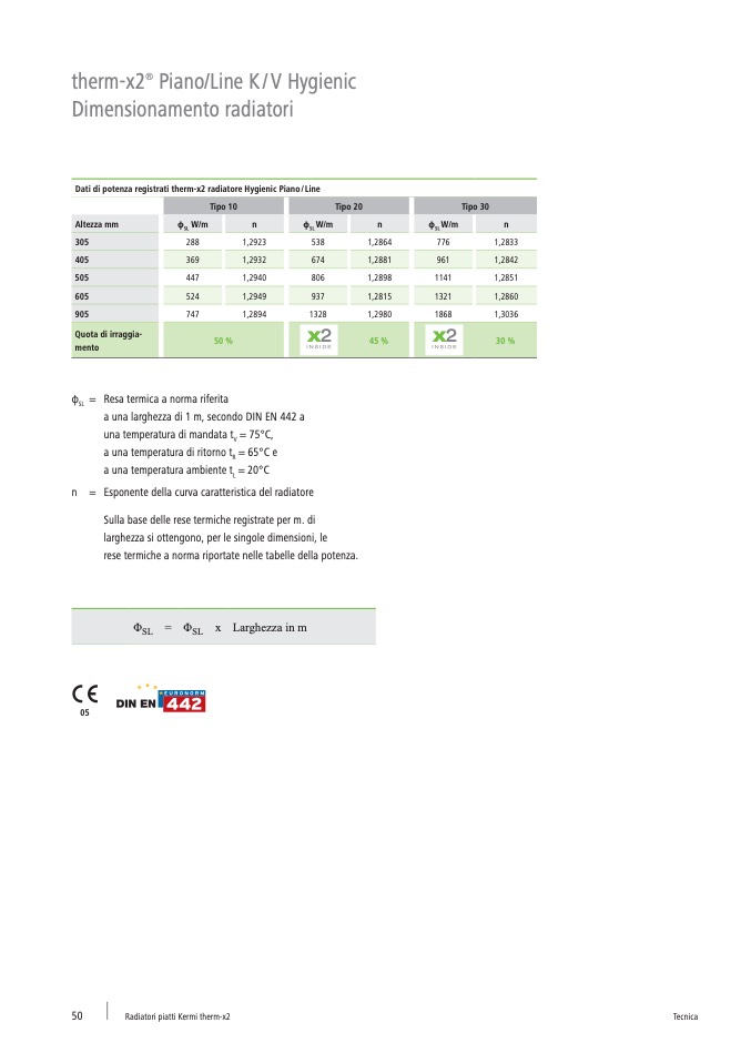 Dati di potenza registrati therm-x2 radiatore Hygienic Piano / Line