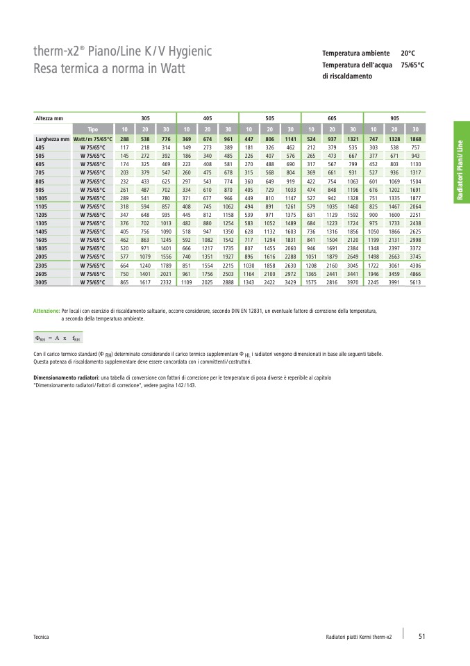 "Dimensionamento radiatori / Fattori di correzione", vedere pagina 142 / 143.