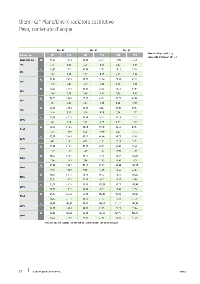 Interasse 350 mm (altezza 405 mm) vedere tabella radiatori compatti Piano/Line