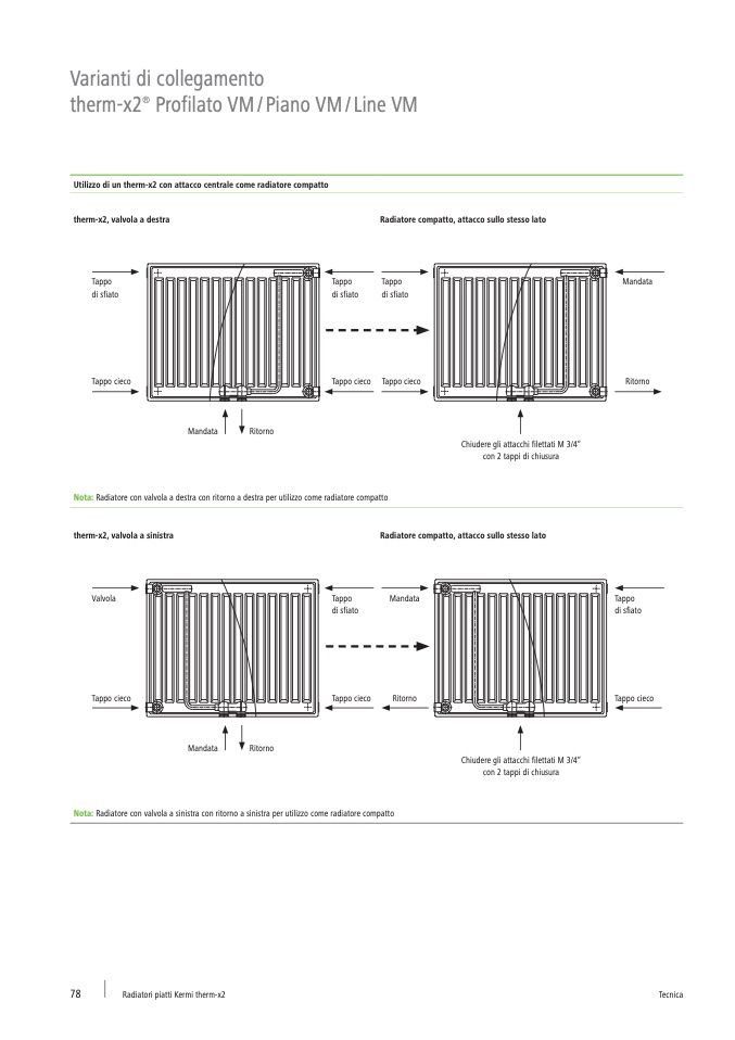 Nota: Radiatore con valvola a destra con ritorno a destra per utilizzo come radiatore compatto