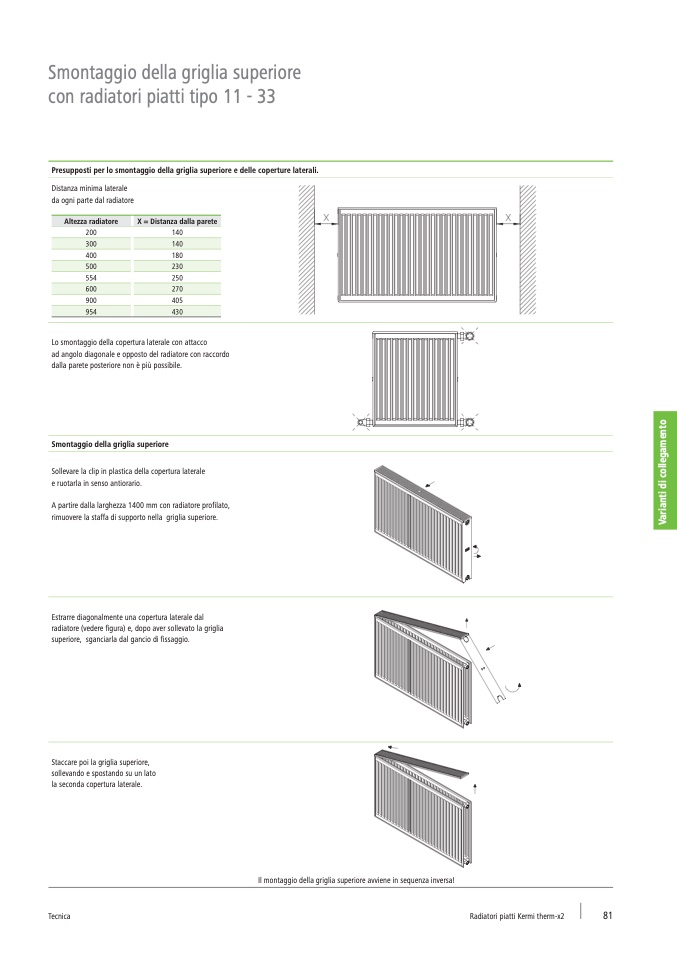 Presupposti per lo smontaggio della griglia superiore e delle coperture laterali.