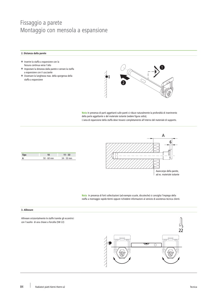 Nota In presenza di parti aggettanti sulle pareti si riduce naturalmente la profondità di inserimento