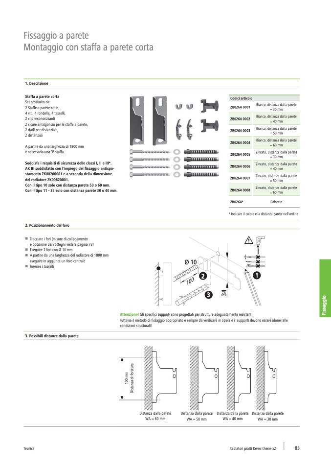 * Indicare il colore e la distanza parete nell'ordine