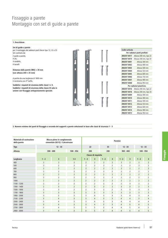 2. Numero minimo dei punti di fissaggio a seconda dei supporti a parete selezionati in base alle classi di sicurezza 1 - 3