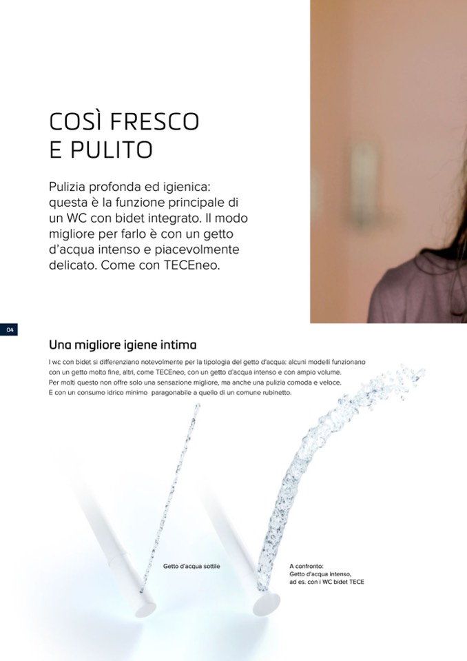 con un getto molto fine, altri, come TECEneo, con un getto d’acqua intenso e con ampio volume.