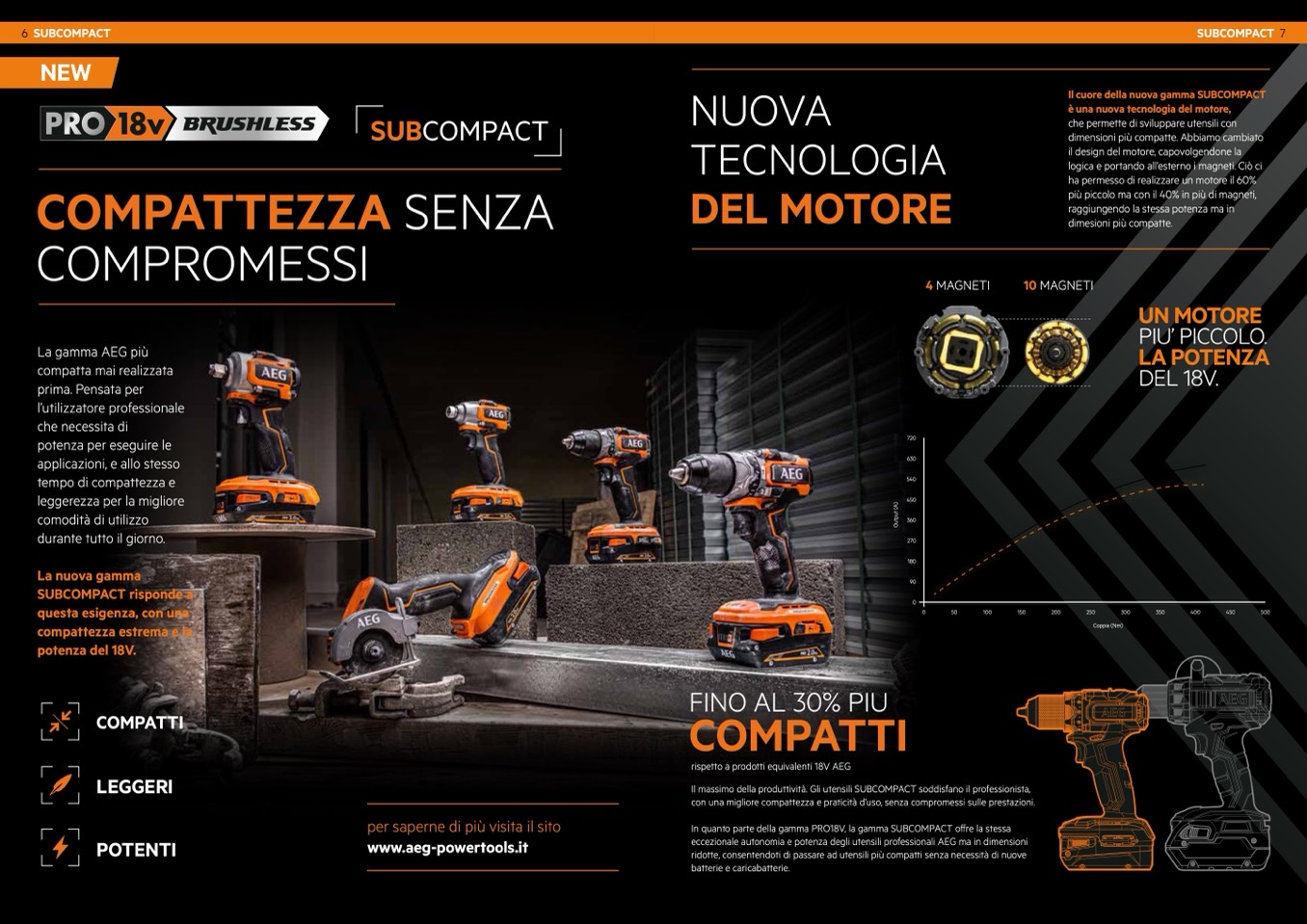 eccezionale autonomia e potenza degli utensili professionali AEG ma in dimensioni