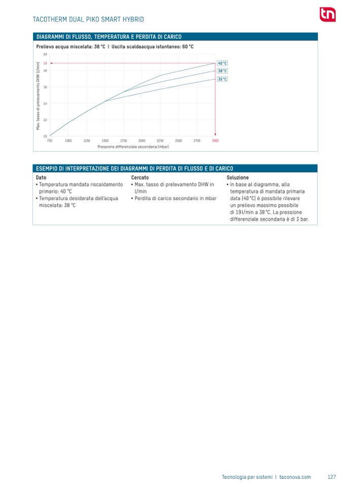 Prelievo acqua miscelata: 38 °C | Uscita scaldaacqua istantaneo: 60 °C