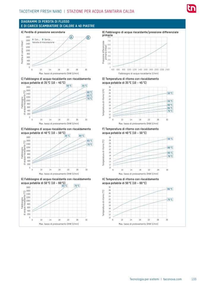 B) Fabbisogno di acqua riscaldante/pressione differenziale