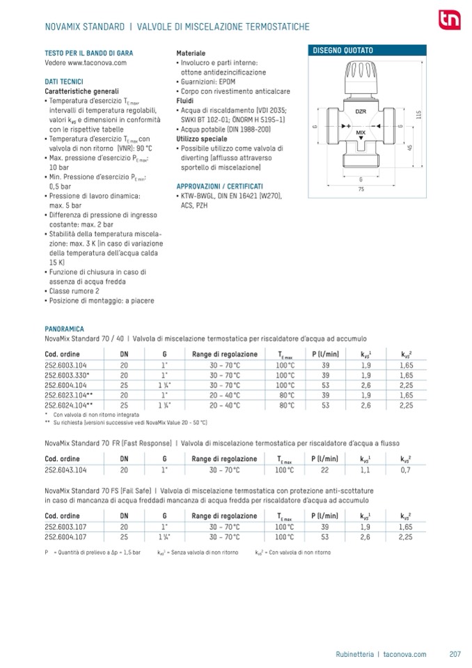 ** Su richiesta (versioni successive vedi NovaMix Value 20 - 50 °C)