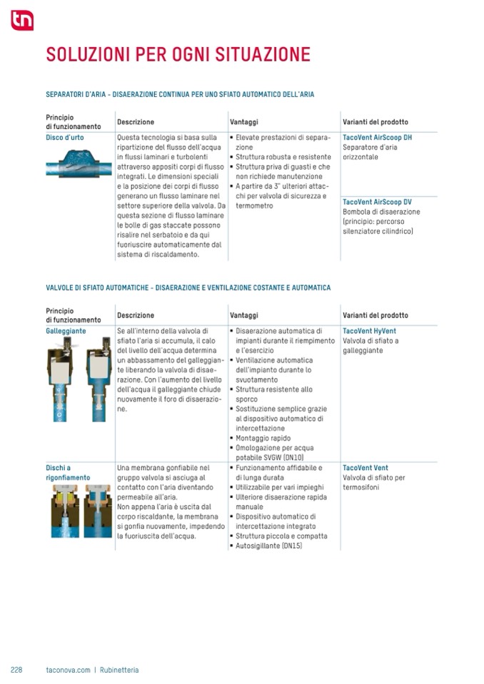 SEPARATORI D'ARIA DISAERAZIONE CONTINUA PER UNO SFIATO AUTOMATICO DELL'ARIA