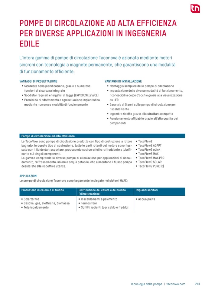 Le pompe di circolazione Taconova sono largamente impiegate nei sistemi HVAC: