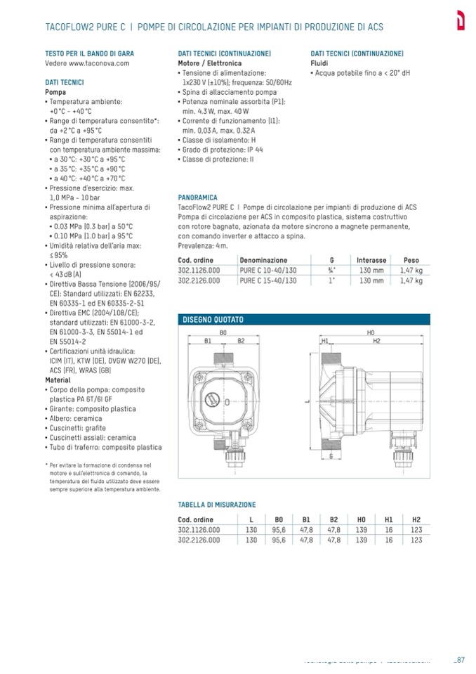Pompa di circolazione per ACS in composito plastica, sistema costruttivo