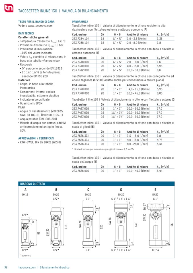 TacoSetter Inline 130 | Valvola di bilanciamento in ottone con filettatura esterna (D)