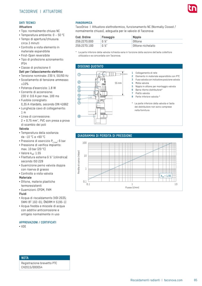 TacoDrive | Attuatore elettrotermico, funzionamento NC (Normally Closed /