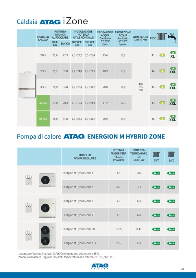 (2) Acqua riscaldata ing./usc. 30/35°C: temperatura aria esterna 7°C B.s. / 6°C B.u.