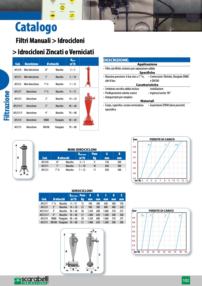 • Massima pressione: 6 bar sino a 1” 1/4, • Connessioni: filettate, flangiate DN80