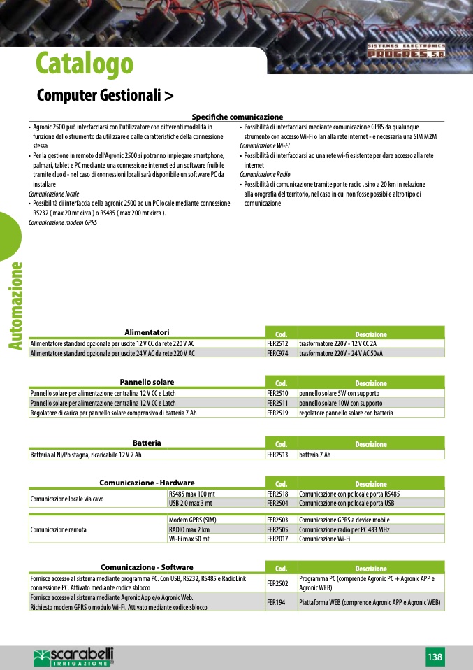• Per la gestione in remoto dell’Agronic 2500 si potranno impiegare smartphone,