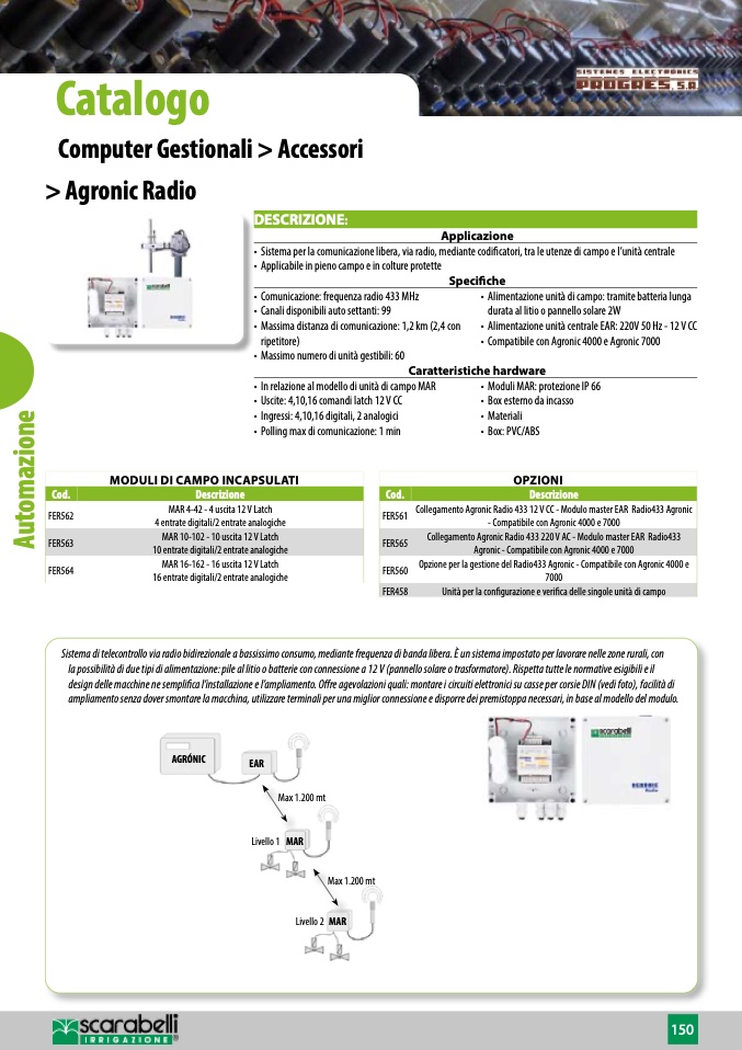 Sistema di telecontrollo via radio bidirezionale a bassissimo consumo, mediante frequenza di banda libera. È un sistema impostato per lavorare nelle zone rurali, con