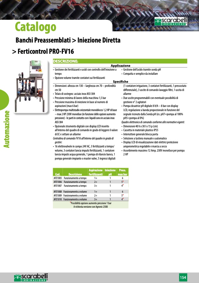 • Gestione dei fertilizzanti e acidi con controllo dell’iniezione a • Gestione dell’acido tramite sonda pH
