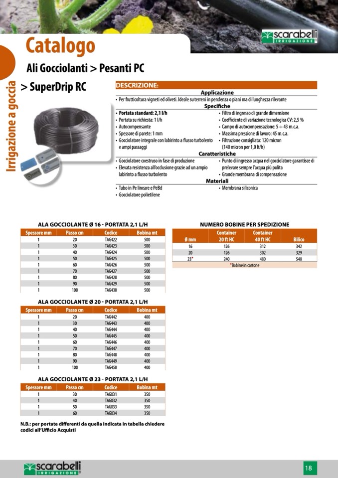 • Gocciolatore integrale con labirinto a flusso turbolento