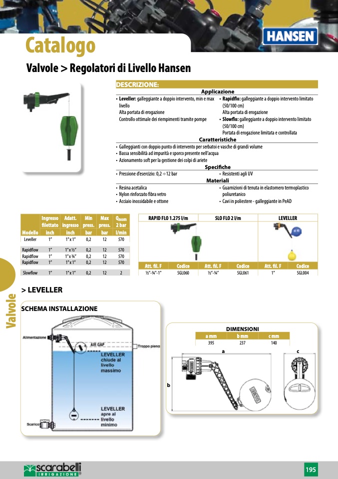 Galleggianti con doppio punto di intervento per serbatoi e vasche di grandi volume