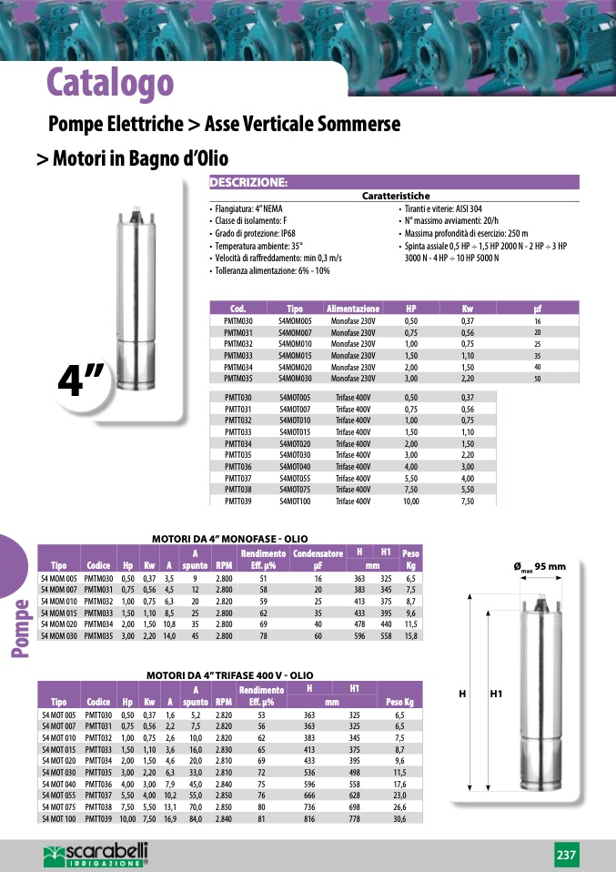 • Spinta assiale 0,5 HP ÷ 1,5 HP 2000 N - 2 HP ÷ 3 HP