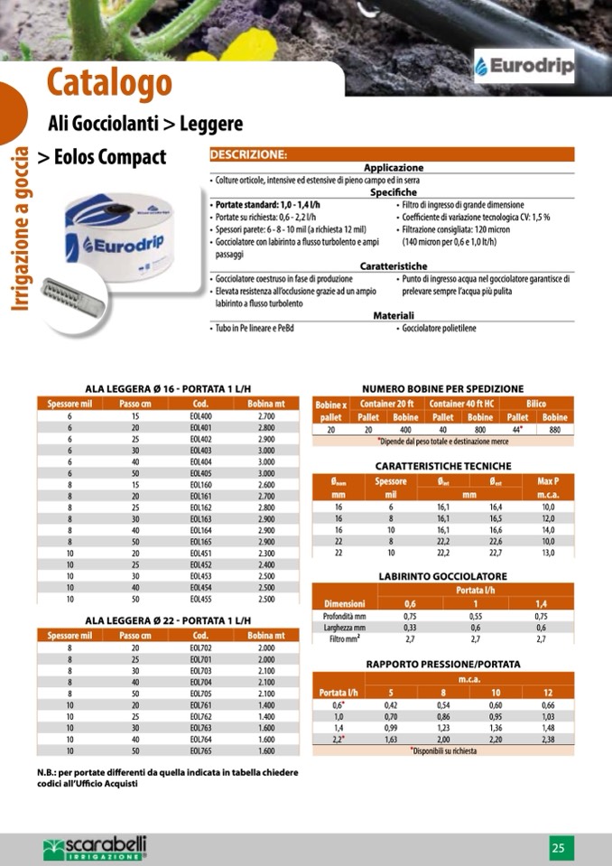 • Spessori parete: 6 - 8 - 10 mil (a richiesta 12 mil)