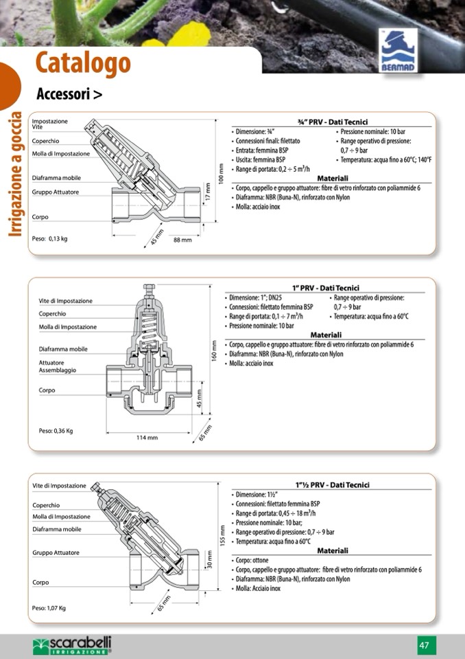 • Corpo, cappello e gruppo attuatore: fibre di vetro rinforzato con poliammide 6