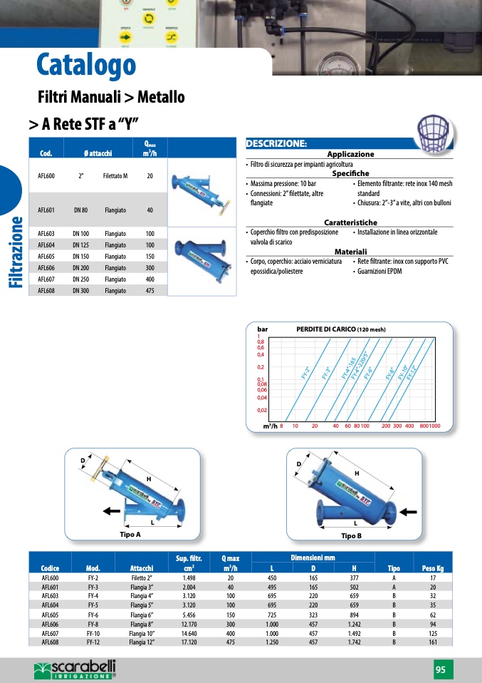 • Elemento filtrante: rete inox 140 mesh