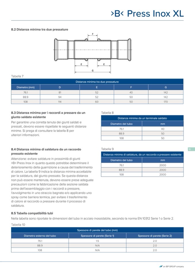 Distanza minima di saldatura, da un raccordo a pressare esistente