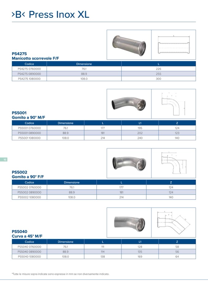 *Tutte le misure sopra indicate sono espresse in mm se non diversamente indicato.