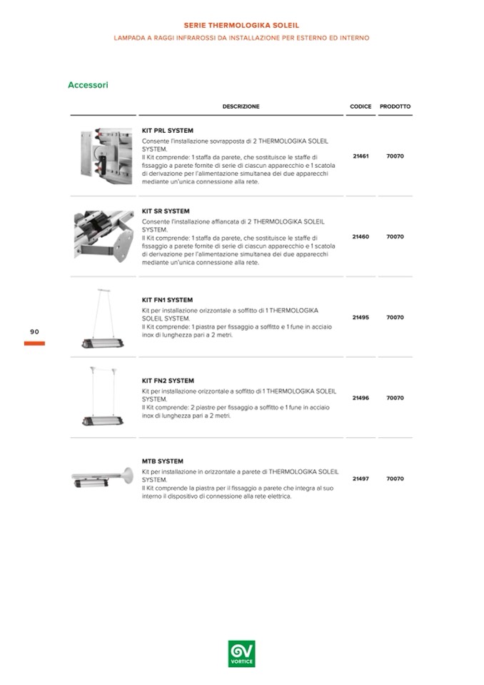 Kit per installazione orizzontale a soffitto di 1 THERMOLOGIKA SOLEIL