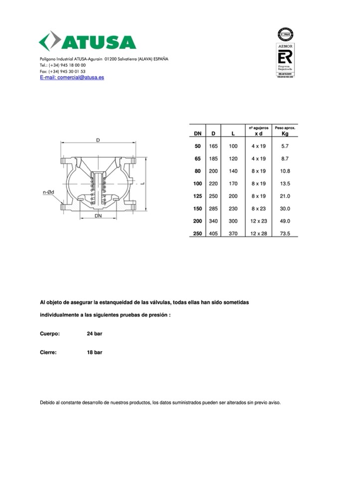 Al objeto de asegurar la estanqueidad de las válvulas, todas ellas han sido sometidas