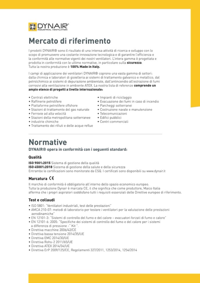 Tutta la produzione Dynair è marcata CE, il che significa che come produttore, Maico Italia