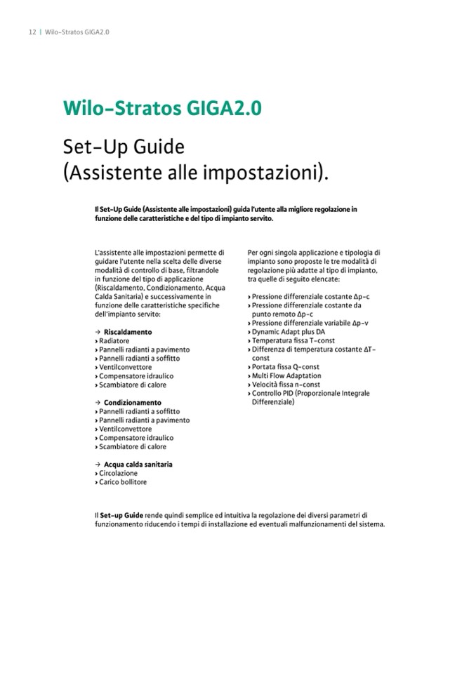 Il Set-up Guide rende quindi semplice ed intuitiva la regolazione dei diversi parametri di