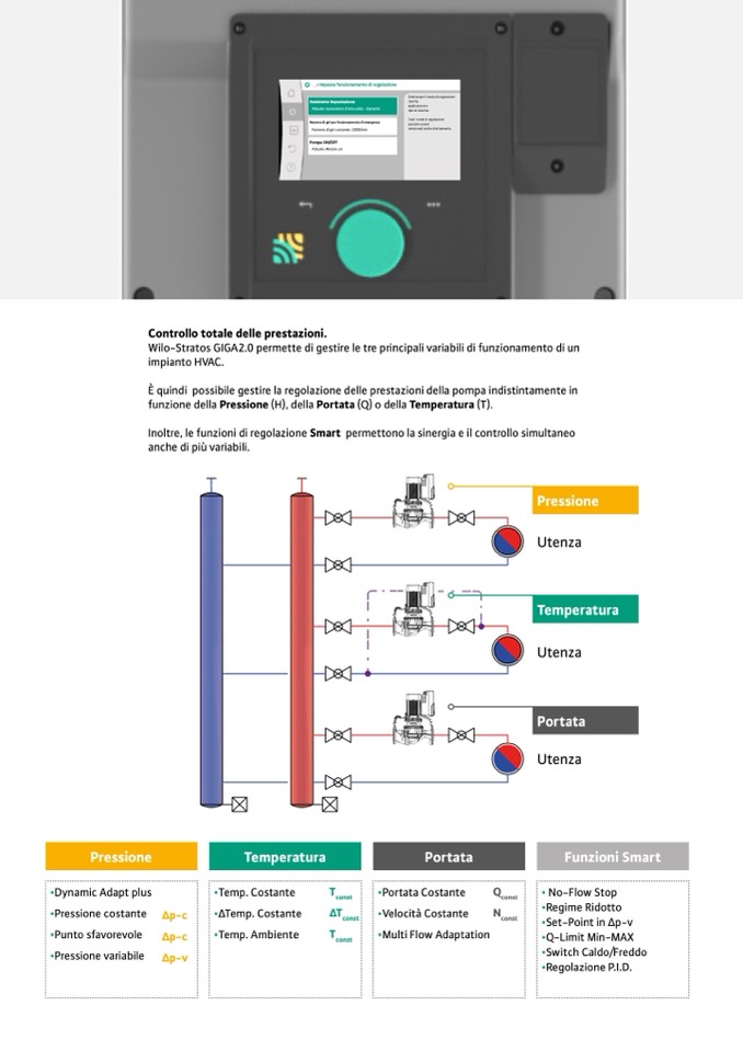 Wilo-Stratos GIGA2.0 permette di gestire le tre principali variabili di funzionamento di un
