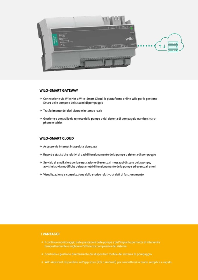 Connessione via Wilo Net a Wilo-Smart Cloud, la piattaforma online Wilo per la gestione