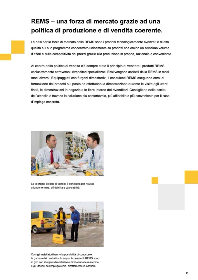 Al centro della politica di vendita c’è sempre stato il principio di vendere i prodotti REMS