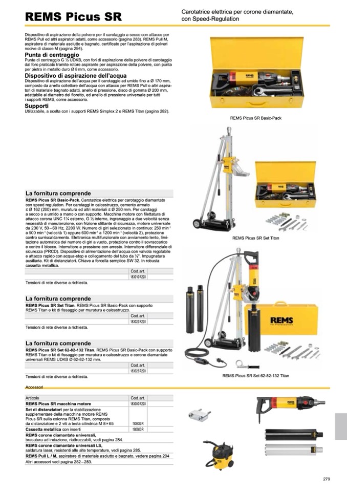 REMS Picus SR Basic-Pack. Carotatrice elettrica per carotaggio diamantato