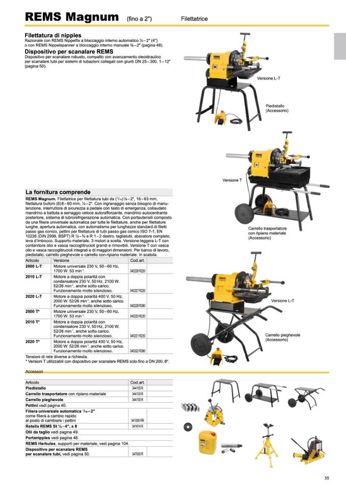 REMS Magnum. Filettatrice per filettatura tubi da (